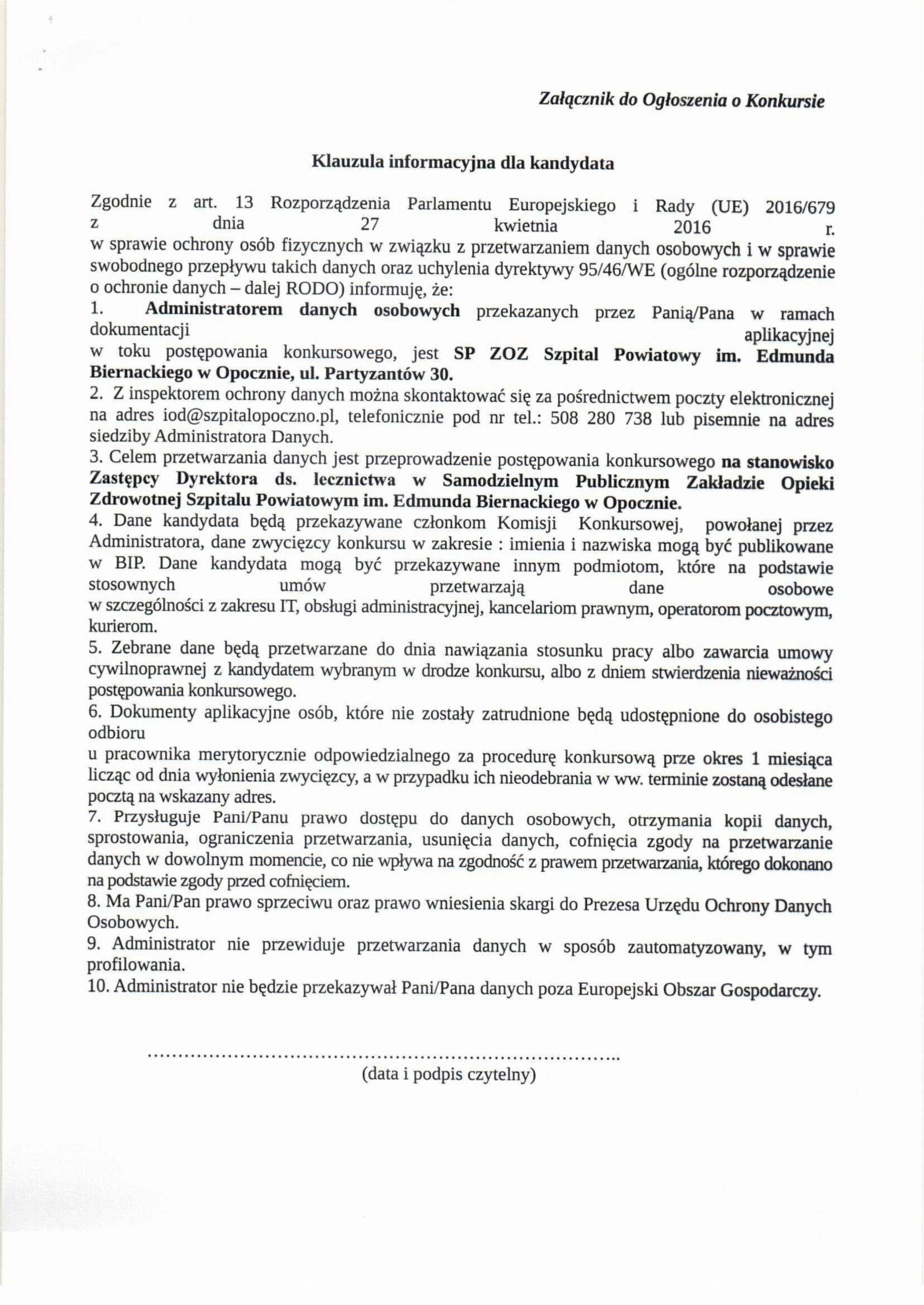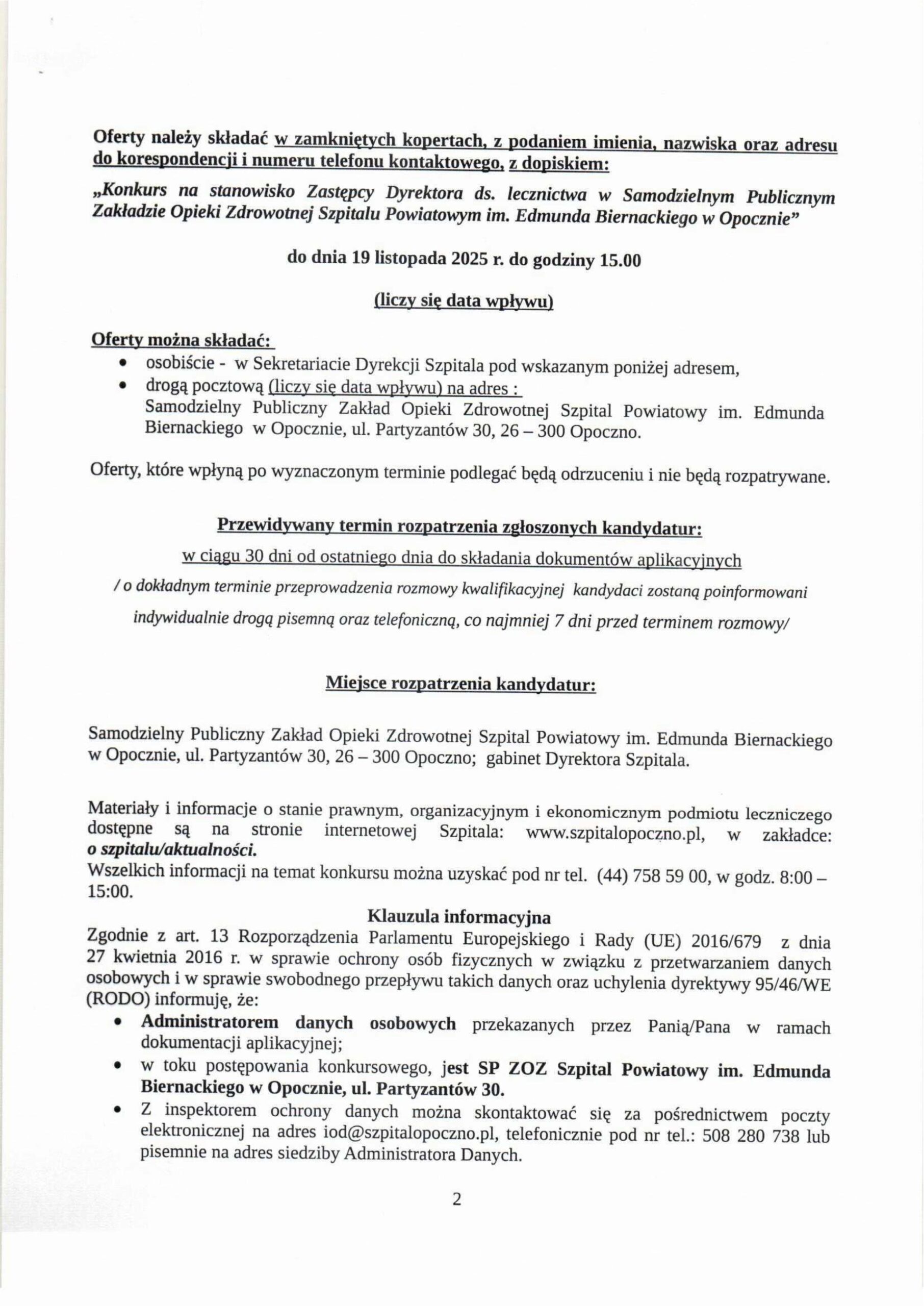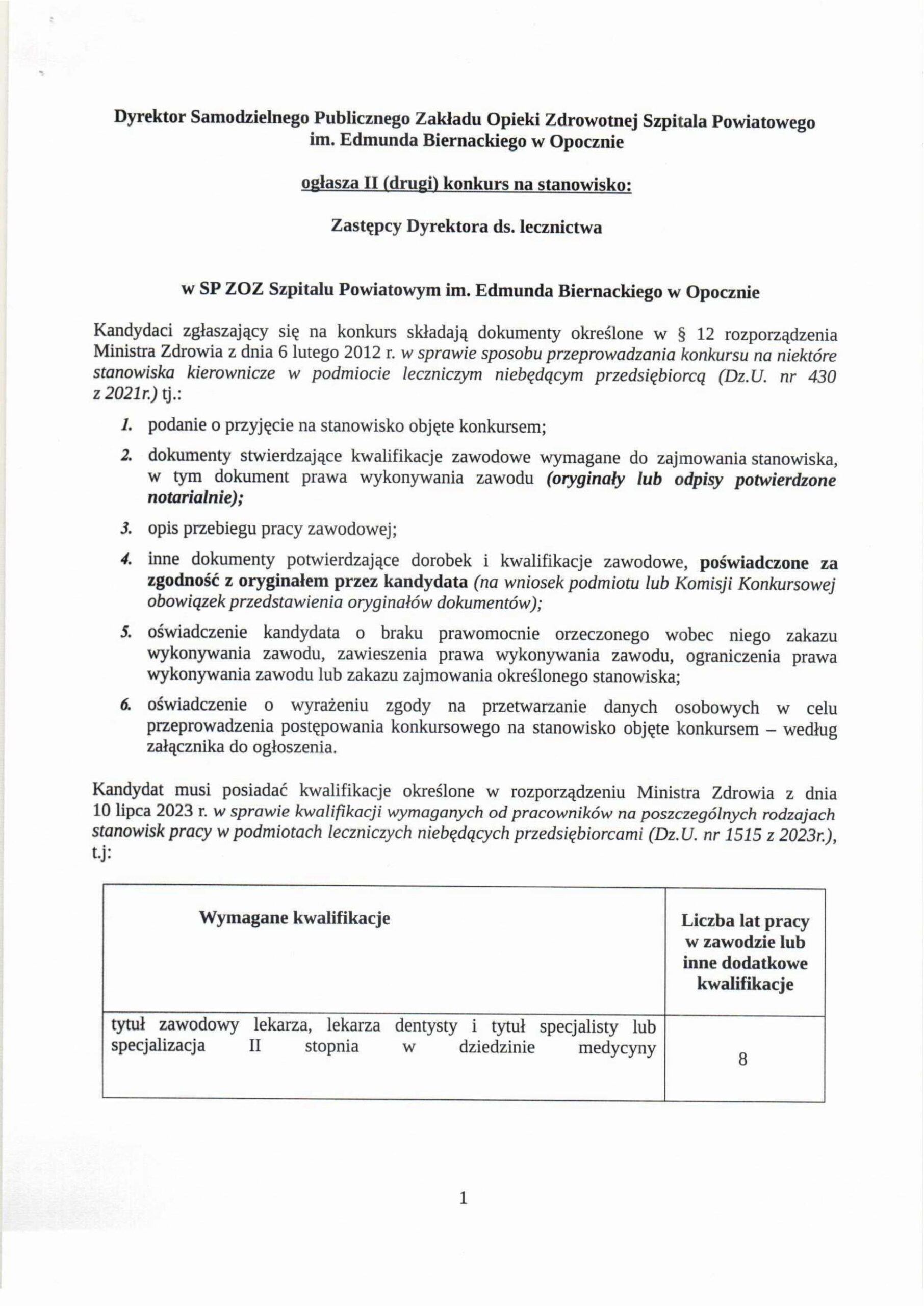 II KONKURS NA STANOWISKO ZASTĘPCY DYREKTORA DS. LECZNICTWA!