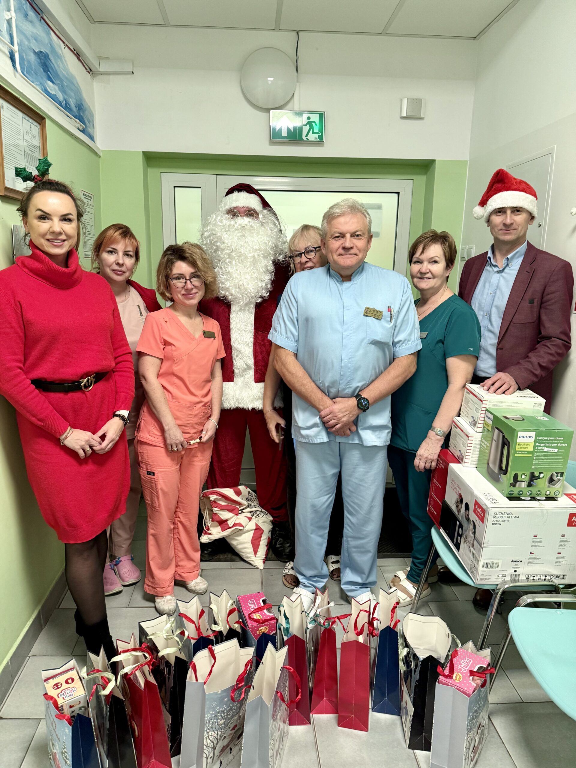 Nie zapomniał również o naszym wspaniałym Personelu, który z oddaniem i miłością troszczy się o każdego pacjenta. Mikołaj obdarował ich słodkimi chwilami wytchnienia, dziękując za ich codzienną, niezastąpioną pracę.